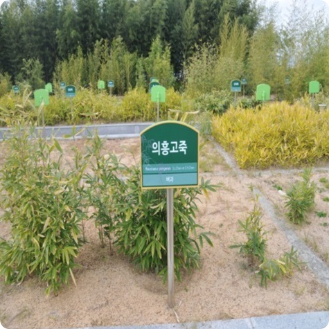 | 대의 높이는 3~5m이고 직경이 1.2~2.5cm이며 새 대는 푸른 황색이고 흰 가루가 두껍게 덮여 있으며 마디와 마디 사이의 간격이 15~20cm이다. 죽순 껍질 가장자리는 녹색이거나 푸른 황색이고 윗부분 변두리가 말라 시든 색깔이며 탈락되는 흰 가루가 두껍게 덮여 있고 위에 자주색의 작은 가시 털이 덮여 있다. 변두리에는 자홍색의 굵고 부드러운 털이 있고 밑 부분에는 황갈색의 부드러운 털이 있다. 죽순 껍질 귀 부분이 새 달 모양이고 가장자리 어구에 바짝 붙어 있으며 발달된 자홍색의 털이 있다. 죽순 축은 중간이 약간 들어가 있거나 호형을 이루며 높이는 4~5mm이고 흰 가루가 두껍게 덮에 있다. 죽순 껍질 잎은 피침 형이고 뒷면에 흰 색의 뚜렷하지 않은 짧은 융모가 있으며 정면에는 흰 색의 짧은 털이 있다. 대나무 잎은 피침 형으로 길이가 13~20cm이고 넓이는 2~2.7cm이다. 죽순이 자라는 시기는 5월 상순에서 6월까지이다. 대는 견고하여 천막 대 , 우산 손잡이 등에 쓰이고 죽순은 먹지 않는다. 분포 : 강소성, 복건성, 절강성이다. |
