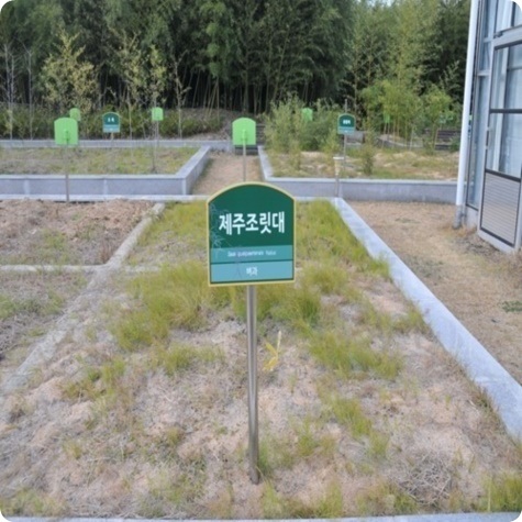 | 한라산에서 자라며 제주시의 원교(圓嶠)부근에 많다. 높이 10~80cm,지름 3~4mm로서 털이 없고 녹색이며 마디는 도드라지고 마디 주위가 약간 자주색이다. 초상엽은 길이 50~87mm 로서 엽편이 기부가 둥글고 6mm 정도이다. 견모(消毛)는 잘 발달되지 않으며 때로는 빈약하게 나타난다. 잎은 타원형 또는 장타원형이고 길이 7~20cm,너비 15~20cm로서 긴 첨두이며 원저 또는 넓은 예저이고 표면은 연한녹색으로서 털이 없으며 뒷면은 회록색으로서 잔털이 약간 있다. 잎집(葉?)은 견모가 없거나 몇 개의 곧은 것이 있다. 꽃은 6-7년 마다 피고 원주화서에 달리며 영과(潁果)는 밀알 같고 껍질이 두껍지만 전분자원으로서 먹을 수 있다. |