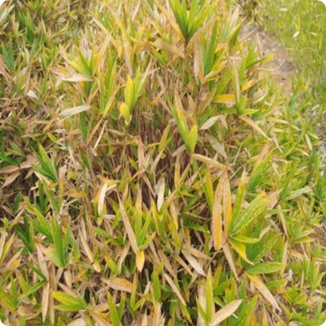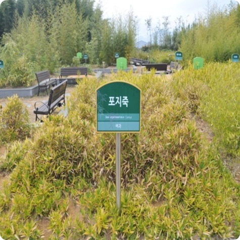 | 높이 0.3~0.5m이고 지름 0.2~0.3cm이며 마디사이의 간격이 약 10cm이다. 죽순 피는 녹색이며 마디사이 간격보다 짧다. 줄기는 녹색으로 털이 없으며 마디 아래쪽에 폭이 좁게 흰 가루로 된 테두리가 둘러있다. 죽순 피 아래 부분에 부드러운 흰색 털이 있고 가장자리에는 연한 갈색의 부드러운 털이 있다. 탁이는 없고 각각 길이가 5~7mm의 길고 곧으며 가느다란 흰색 털이 있다. 죽순껍질의 끝부분은 거의 보이지 않을 정도로 작고 줄기의 아래쪽에 있는 죽순껍질의 뾰족한 끝부분도 작다. 위쪽에 있는 죽순껍질의 뾰족한 끝부분은 잎 모양을 하고 있다. 대 잎은 계란모양의 피침형으로 녹색이며 가끔 황색이나 백색의 세로무늬가 있다. |
