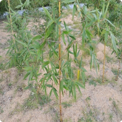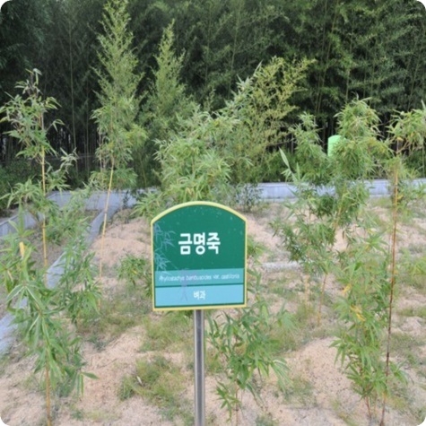 주 가지가 노란색이며 그 마디에서 곁가지까지의 흠이 보통 선명한 녹색이고 때로는 그 옆 측에서도 같은 색상의 무늬가 2~3가지 있는 것이다. 관상용으로 할 수 있는 대나무 종류이다. 분포: 장강 유역에 가끔 재배하는 곳이 있으며 절강성 안길 대나무재배원에서 종자를 인입하여 재배한다.