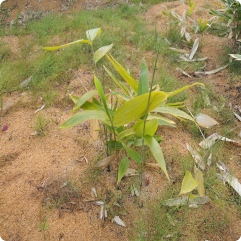 | 대의 높이는 3~5M이고 직경이 1~3CM이며 마디와 마디 사이의 간격이 35~40cm이다. 어린 대에는 가늘고 부드러운 털이 덮여 있고 털이 없으며 오래된 대는 황색이다. 죽순 껍질 가장자리는 녹색이고 반들반들하며 밑 부분에 금색의 무성한 털이 빽빽이 나 있고 변두리는 거의 말끔하다. 죽순 껍질 귀 부분이 타원형이고 거칠며 변두리에는 가늘고 부드러운 털이나 털이 덮여 있고 때로는 죽순 껍질 귀 부분이 완전하지 못하다. 죽순 축의 앞단이 절단된 모양이거나 약간 솟아있고 보통 털이 없으며 때로는 가늘고 부드러운 털이 있다. 마디마다 곁가지가 3매이고 작은 가지마다 2~4매의 잎이 있으며 죽순 껍질 귀 부분과 어깨 부분 털이 없고 잎 추는 절단된 모양이고 앞단에 가늘고 부드러운 털이 있다. 대나무 잎은 피침 형으로 길이가 10~18cm이고 넓이가 1.3~2.2cm이며 양 면에 모두 털이 없다. 분포 : 절강성, 복건성, 강서성, 운남성 등 지역이다. |