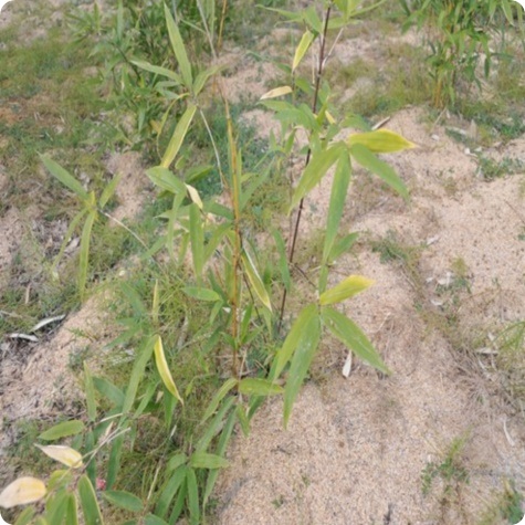 | 대의 높이는 3~4m이고 직경이 1.5~2cm이며 새 대는 녹색이고 탈락성이 있는 흰 가루가 두껍게 덮여 있으며 마디와 마디 사이의 간격이 20~35cm이다. 죽순 껍질 고리 부분에 둥그런 고리 모양의 코르크 성질의 잔여물이 있다. 죽순 껍질 가장자리는 가죽 성질을 띠고 있고 늦게 탈락되며 연한 갈색이고 갈색의 가는 점이 성기게 덮여 있거나 자홍색의 무늬가 있으며 기름처럼 광택이 나고 밑 부분에 갈객의 긴 융모가 나 있다. 죽순 껍질 귀 부분이 작고 반달 모양이며 자주색이고 여러 갈래의 자홍색의 탈락성이 있는 털이 나 있다. 죽순 축은 자홍색이고 가운데가 약간 들어갔거나 파도 모양이며 높이가 약 3mm이다. 죽순 껍질 잎은 피침 형으로 길이가 13~18CM이고 넓이가 1.5~2.5CM이다. 죽순이 자라는 시기는 5월부터 6월초까지이다. 통 대로 울타리를 만들거나 천막을 짓는데 쓰인다. 분포 : 광서성, 사천성, 운남성, 강서성, 복건성이다. 절강성, 강소성, 섬서성에서도 재배한다. |