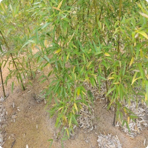 | 대의 높이는 6~8m이고 직경이 5~7cm이다. 대의 밑 부분 마디 사이에서 보통 불규칙적인 매우 가는 베이지색이나 연한 껍질 가장자리는 연한 황백색이고 꼭대기 끝 부분이 연한 자주색이며 성기게 자란 연 갈색의 작은 반점이 있고 흰 가루와 가는 털이 덮여있다. 죽순 껍질 귀와 털이 발달하였고 녹색이다. 죽순 축이 비교적 발달하였고 갈색이며 앞단이 솟아 있고 가는 수염 모양의 털이 있다. 죽순 껍질 잎은 긴 창 모양이거나 거꾸로 뒤집어 졌으며 주름이 선명하게 나 있고 색깔이 다양하게 변한다. 죽순이 자라는 시기는 4월 상순이다. 죽순 맛이 좋아 우량죽순용 대나무 종류이다. 분포: 절강성, 복건성, 북부 강소성에 모두 재배하는데 수량이 적다. |