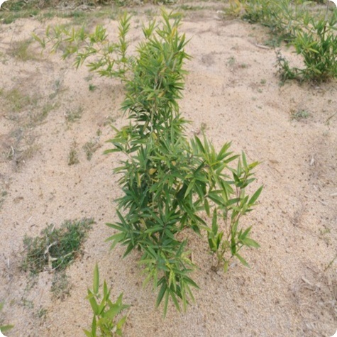 | 대의 높이는 8~12m이고 직경이 5~8cm이며 죽순 껍질 가장자리는 연한 갈색이거나 연한 적 홍색이며 윗부분에 옅은 색상의 방사하는 모양의 모늬가 있으며 반점이 없고 변두리에 가지런한 흰색의 연모가 있다. 죽순 축은 연한 자주색이고 앞단이 호형이며 가는 이빨이 있고 짧고 가는 털이 빽빽이 나있다. 죽순 껍질 끝 부분과 털이 없거나 빈약하다. 죽순 껍질 잎은 창 모양이거나 삼각모양의 피침 형이고 녹색이며 변두리나 윗부분이 자주색을 띤다. 순이 자라는 시기는 4월 하순이다. 죽순 맛이 신선하고 맛있으며 우수한 죽순용 대나무이다. 대는 일반자재로 쓰이는 외에 쪼개어 돗자리를 만들 수 있다. 분포 : 절강성 안길, 안휘성 적계 등 지역이다. |